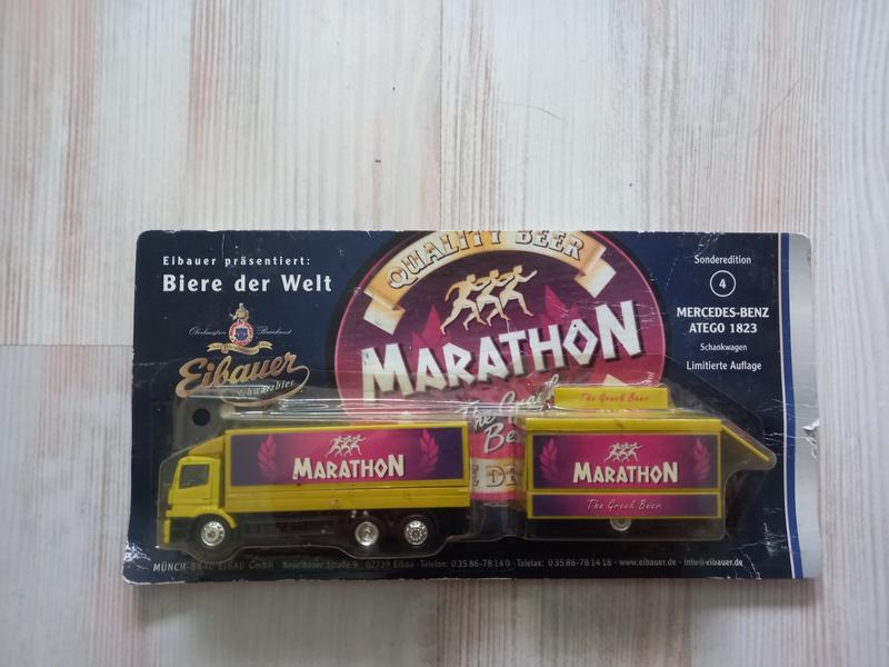 В упаковке Жидкость, 1:87, грузовик MB Atego с барным прицепом, Münch-bräu Eibau, марафон Германия