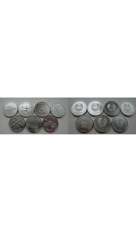 Приднестровье - набор 7 монет x 1 Ruble 2023 UNC Вооруженные силы Приднестровья