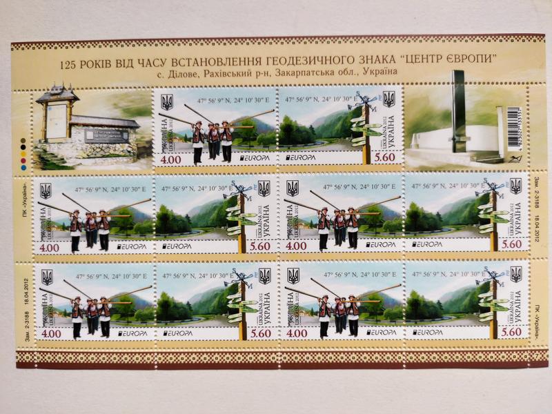Поштові марки України 2012 аркуш 125 років від часу встановлення геодезичного знака Центр Європи Europa