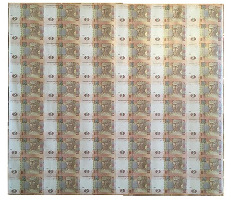 Неразрезанный лист из банкнот нбу номиналом 2 грн 60 шт. коллекционные листы банкнот. нера...
