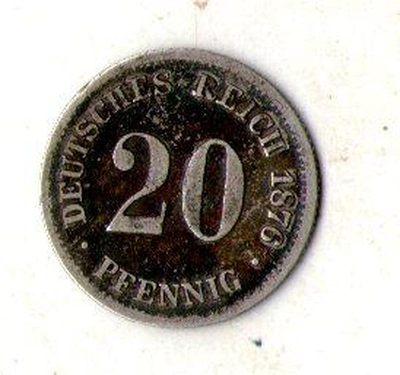 Німецька імперія 20 пфенінгів 1876 рік срібло №191