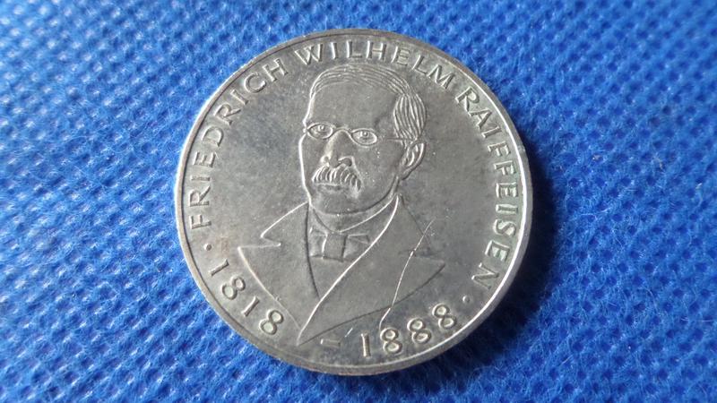 Німеччина ФРГ 5 марок 1968 срібло 11.2 гр 150 лет со дня рождения Фридриха Вильгельма Райффейсена №2177