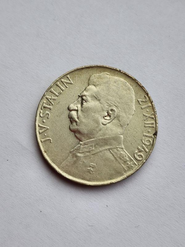 памятная серебряная монета Чехословакии номиналом 50 крон 1949 года, выпущенная в честь 70-летия Иосифа Сталина. На аверсе изображен чешский лев с гербом Словакии на щите, надпись «50» и «REPUBLIKA ČESKOSLOVENSKÁ» (Чехословацкая Республика). Реверс монеты, невидимый на изображении, содержит бюст Иосифа Сталина и дату его рождения. Монета была отчеканена тиражом 1 000 000 экземпляров. Дизайн разработан гравером Отакаром Шпаниелем. 50 Korun (Josef V. Stalin) - Czechoslovakia - Numista Battenberg Gietl Verlag (publisher). Weltmünzkatalog. Battenberg Gietl Verlag, Regenstauf, Bavaria, Germany (3 volumes). See 10 sw... Numista Czechoslovakia 50 Korun KM 28 Prices & Values - NGC
