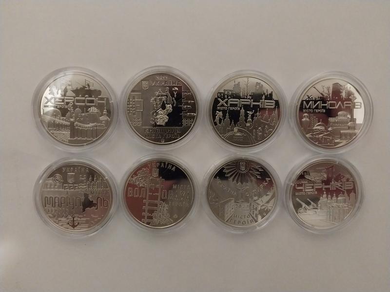 Набор из 8 медалей выпущенных НБУ посвящен городам героям Украины в капсулах. Продается набором.
