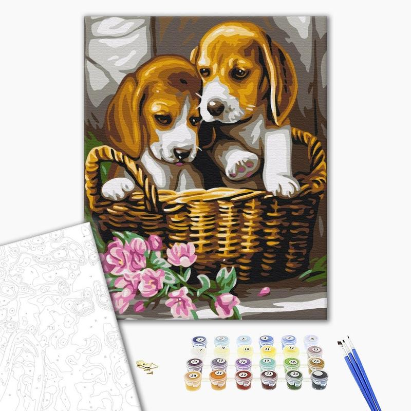Картина по номерам 40х50 на деревянном подрамнике "парочка в корзине" bs29695