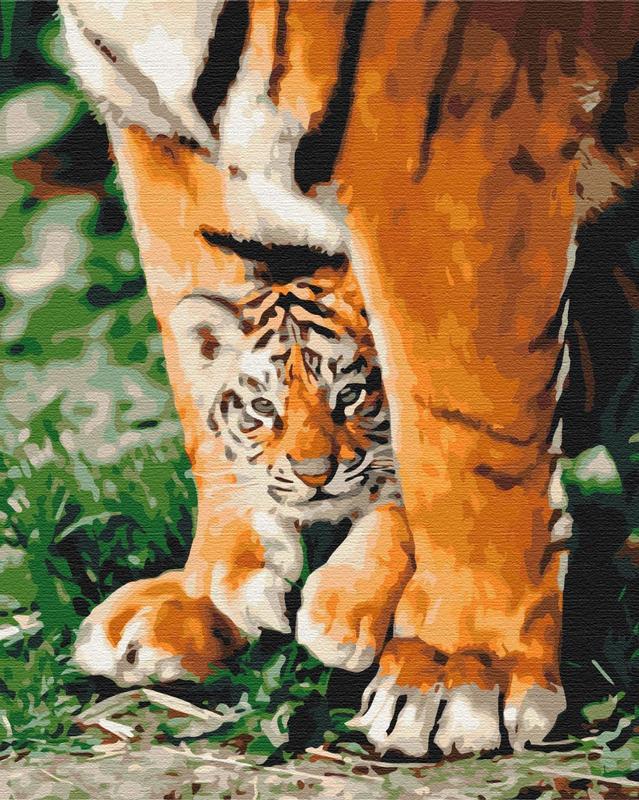 Картина по номерам 40х50 на деревянном подрамнике "тигрёнок в мощных лапах" bs29947