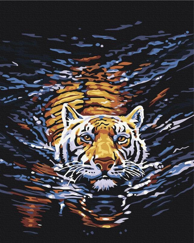 Картина по номерам 40х50 на деревянном подрамнике "тигр плавец" bs158