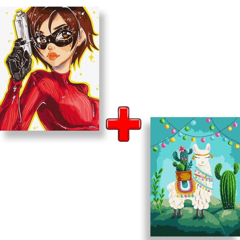 Набор картин по номерам 2 в 1 "девушка-агент" 40х50 kho2551 и "веселая лама" 30х40 kho5069
