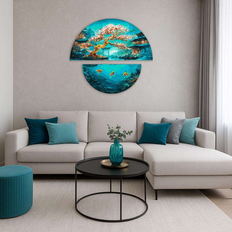 Картина по номерам пейзаж. магия двух миров с красками металлик (полукруги) 70*70 см орига...
