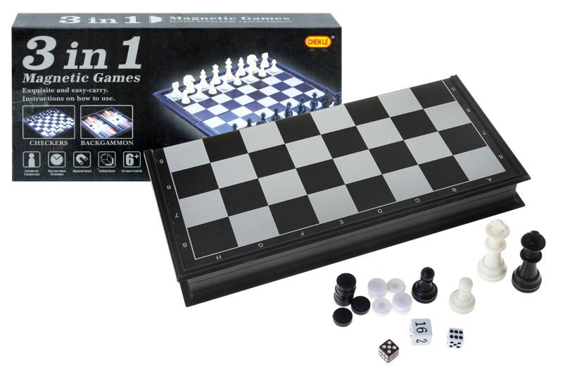 Магнитные игры 3 в 1 (шахматы, шашки, нарды). 3 кубика в комплекте. В комплекте: шахматы, шашки, нарды. Особенности: фигурки магнитятся к полю, так что их можно смело брать с собой в дорогу. Возраст - от 6 лет. Настольные Игры способствую развитию математических способностей, логического мышления, способности принимать самостоятельное решение, интеллекта, стратегического мышления, внимательности. Вес в упаковке: 485 г Вес без упаковки: 400 г Габариты в упаковке: 25 x 4,5 x 13 см. Габариты без упаковки: 25 x 25 x 2.2 см. Уважаемые клиенты, отправляя Вам товар, мы его пакуем самостоятельно, для того чтобы Вы не переплачивали за упаковку на почте, а платили только доставку. Это позволяет сэкономить от 10 до 100 грн в зависимости от объема посылки.
