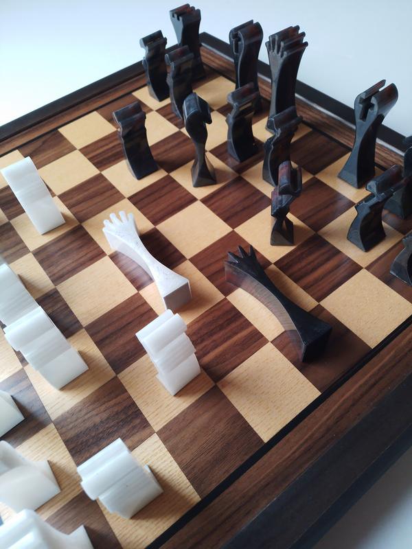 Шахматы ручной работы. Каждая ячейка на поле вырезается и вклеивается отдельно. Шахматное поле изготовлено и из натуральной древесины - ясеня. Размер доски 50*50 см. Инкрустация клеток - ценные породы натурального дерева Фигуры - керамика или смола. Сверху покрытие натуральным масло-воском с тонировкой и итальянским лаком. Упаковка-презентабельная коробка.