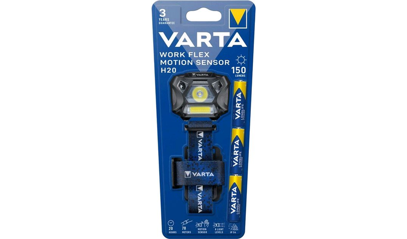 Налобний ліхтарик інспекційний Varta Work Flex Motion Sensor H20 з датчиком руху для управління режимами роботи. Джерело живлення: 3 батареї (входить до комплекту) або акумулятори розміру AAA. Особливості - Надійний (випробуваний падінням з висоти 2м) лобовий ліхтарик - Датчик руху активується проведенням руки перед ліхтарем - джерело світла COB LED 3W - 8 режимів роботи: сфокусований промінь (high, low, strobe, SOS), ширококутне освітлення (high, low) , 2 вмикачі сенсора для точкового або загального режиму освітлення - пилу та волого захист IP54 - яскраве точкове LED джерело світла та COB для ширококутного світла - 6+2 режимів роботи: Spot (high, low, strobe, SOS), Flood (high, low ), Spot Motion Sensor, Flood Motion Sensor - змінний кут повороту по вертикалі - знімний ремінець, придатний для стрики Специфікація Світловий потік: 150 Lumen Фокусування змінюється: Ні Режими роботи: Spot (high, low, strobe, SOS), Flood (high, low), Spot Motion Sensor, Flood Motion Sensor Живлення : 3xAAA (батарейки або акумулятори) 20ч Light Range: 78m Матеріал корпусу: ABS Plastic, PC, Rubber Колір: Black Waterproof: IP54 Розмір світильника: Вага (без батарей): Вага (з батареями): 107g Потужність світлового потоку, лм: 150 Елементи живлення: 3xAAA Дальність променя: 78