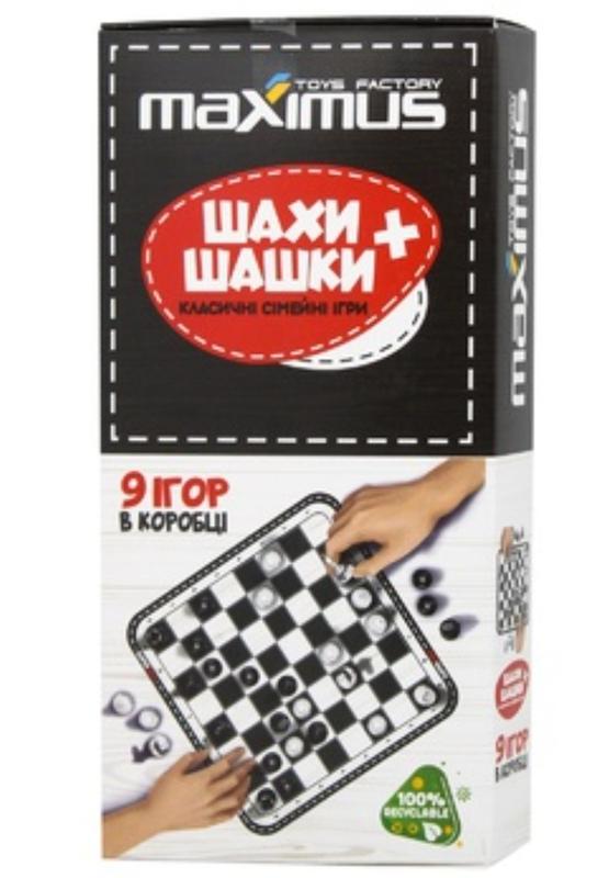 Набір 5476 шашки шахи 9 ігор в коробці тм максимус (5476)