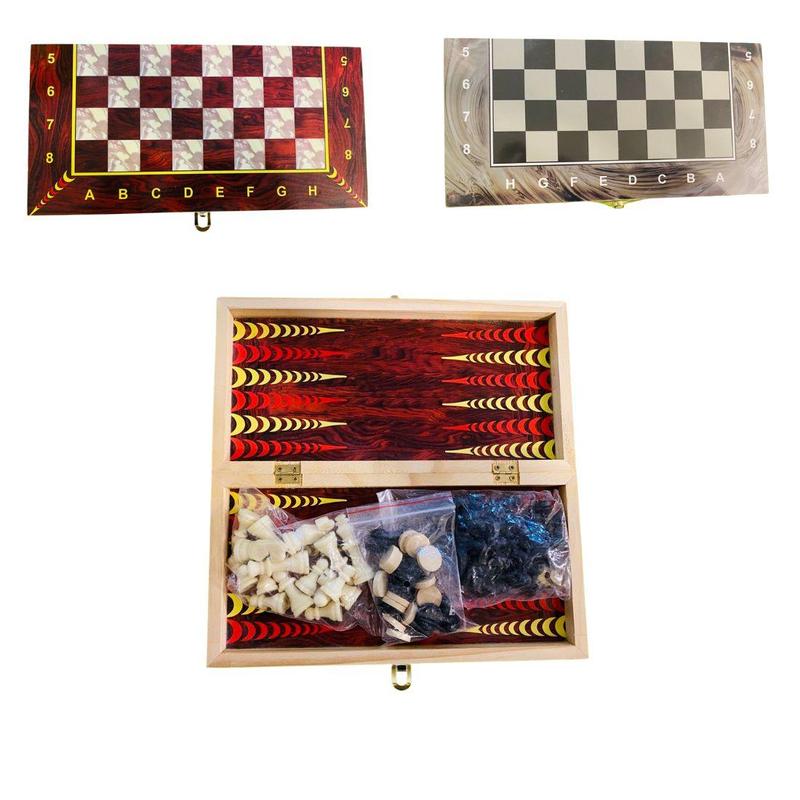 1223-3 шахматы, шашки, нарды, деревянные, размер игрового поля 22х1,5х22 см.