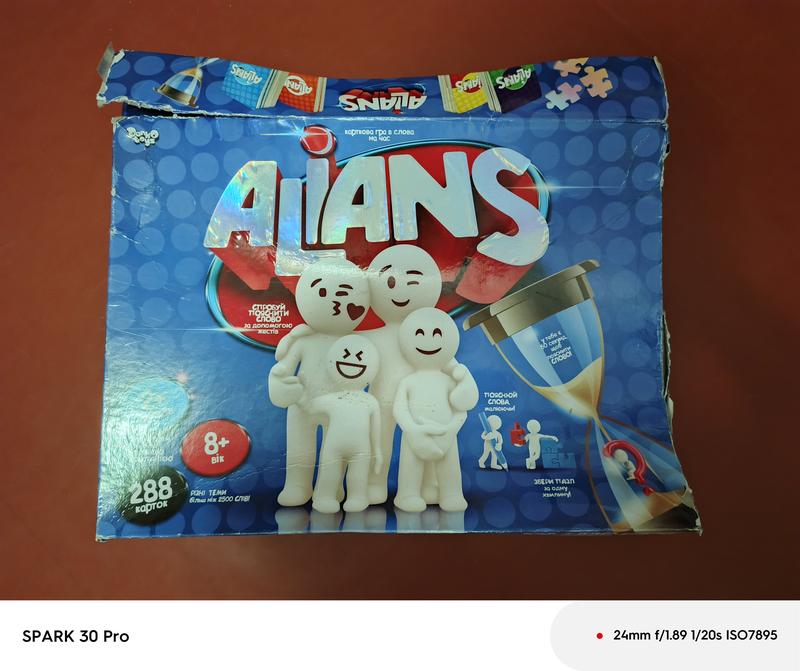 Все карточки в наличии, в хорошем состоянии, нет песочных часов и пазла, коробка в плохом состоянии.