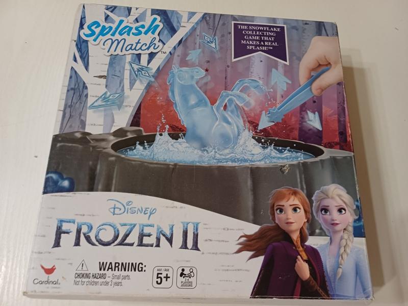 внимание!. Почему-то заклинило мехагизм, продаю как игру на ловкость. Отлично подходит для моторики. ❄️ Splash Match — Правила гри 🧩 Содержимое коробки: 1 водная игровая база (Water Nokk Game Base) 1 фигурка Эльзы 1 подставка для Эльзы 30 карточек-снежинок (Snowflake Mats) - в наличии 16штук 1 скіпетр (Scepter Stick) 1 инструкция 🎯 Цель игры: Первым заполни свой коврик (Snowflake Mat), собрав из фрагментов полный узор снежинки. 🧊 Подготовка к игре: 1. Если играешь впервые - наклей наклей наклейки в виде снежинок на карточки-снежинки. 2. Наполни основу игры водой до линии между двумя уровнями пластика (не выше!). 3. Нажми на голову водного духа Нокка так, чтобы она была полностью погружена в воду. Это активирует механизм — вода начнет двигаться. 4. Поставь фигурку Эльзы на пластиковую подставку, а затем на центр игровой базы. 💦 Как играть: 1. Игроки поочередно пытаются поймать фрагменты плавающих в воде снежинок с помощью скипетра. 2. Когда игрок успешно уловил частичку, он кладет ее на свой коврик в подходящее место. 3. Если фрагмент не нужен — поверни его обратно в воду. 4. Если случайно вронил фигурку Эльзы в воду, - твой ход заканчивается немедленно 5. Сохраняй игру, пока один из игроков не составит полную снежинку на своем коврике. 🏆 Победа: Побеждает тот, кто первым полностью соберет рисунок снежинки на своем коврике. ⚠️ Внимание: Игра предназначена для детей от 5 лет. Не подходит для детей до 3 лет - содержит мелкие детали. Используйте только чистую воду. После игры опорожните игровую базу и высушите ее. Играть лучше на открытом воздухе или в ванне. 🧊 Порада: Чтобы вода крутилась правильно, убедись, что: база заполнена не слишком высоко; фигурка Нокка хорошо прижата вниз — это активирует водяной поток; легкое вращение центральной части (там, где Эльза) создает плавное движение волн.