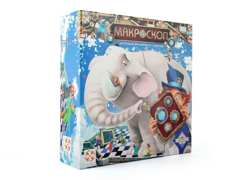 Игроки: от 2 до 6 Время: 30-45 минут Возраст: от 6 лет Язык: Русский Что в коробке 200 двусторонних карточек с картинками и карта-заглушка 64 кристалла (10 синих и 54 жёлтых) 12 жетонов для окуляров 2 шестигранных кубика маркер подсчёта очков счётчик раундов правила игры Макроскоп: не делай из мухи слона! - Ты только посмотри, какой малюсенький этот слон! Да его же легко можно поместить в ладошку и унести к себе домой, чтоб кормить из крышечки, играть и ухаживать за ним. - Слон? Ты что, с ума сошел? С каких это пор слоны умещаются в ладошках и живут в квартирах? - С тех самых, как у нас появились диво окуляры. Хочешь взглянуть? Макроскоп (Macroscope) – не просто новая настольная игра, а настоящее чудо техники, которое способно зрительно приближать предметы. Представляете, как теперь всё перевернется с ног на голову? Макроскоп: как играть, приближать, распознавать? Перед игрой сам макроскоп нужно собрать из предложенных деталей. Это сделать нетрудно, руководствуясь подсказками инструкции. Когда устройство готово, поместите в него стопку карточек с изображениями стрелочкой вверх, а после накройте их верхней панелью и закройте все окошки жетонами. Чтоб исключить из игры верхнюю карточку, которую все видели, аккуратно достаньте её из макроскопа и отложите в сторону. Все участники начинают игру с двумя победными кристалликами, на протяжении партии за них можно будет приобретать дополнительные бонусы, а общая сумма кристалликов в конце игры определит победителя. Настольная игра Макроскоп (Macroscope) длится 10 раундов, участники ходят по очереди и в свой ход активный игрок бросает два кубика, а после открывает те окошки, номера которых выпали. Если увиденные фрагменты картинки не наталкивают вас ни на какую мысль, и вы не можете угадать, что же скрывается под крышкой макроскопа, вы можете спасовать, получив столько кристалликов, сколько всего открытых окошек. Если все-таки решили угадывать, скажите об этом другим игрокам и называйте свои предположения. Обратите внимание, что другие игроки также могут озвучивать свои догадки, заплатив вам за это два победных кристалла. Если вы угадали предмет под крышкой макроскопа, то в ваш карман отправится столько кристаллов, сколько всего закрытых окошек в макроскопе, но в случае ошибки – столько же кристаллов забираются в качестве штрафа. Кстати, в тот момент, когда активный игрок решил сказать «пас», остальные участники все равно могут бороться за открытую карту. Когда «прибыль» разделена, верните крышку макроскопа на прежнее место, закройте жетонами все окошки и вытяните только что угаданную карту так, чтоб под крышкой оказалась новая. Маркер хода передвиньте на второй раунд и вновь повторите все действия. Игра Макроскоп (Macroscope) закончится вместе с окончанием последнего 10 раунда, а победителем будет игрок, обладающий наибольшим количеством кристалликов. Купить Макроскоп – новое чудо техники! Настольная игра Макроскоп (Macroscope) – веселое и интересное развлечение, которое поможет не только хорошо провести свободное время, но и развить внимательность, логическое и пространственное мышление, а также творческие способности.
