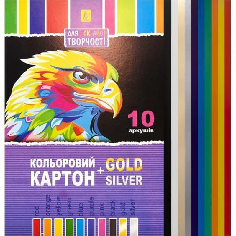 Набор цветного картона "Аляска" в бумажном конверте, 10 листов, формат А4, печать офсетная, плотность картона 250гр. Подходит для аппликаций, вырезки, склеивания. Развивает мышление, моторику рук и фантазию. Цвета: синий, черный, красный, желтый, зеленый, голубой, белый, оранжевый, серебряный, золотой.