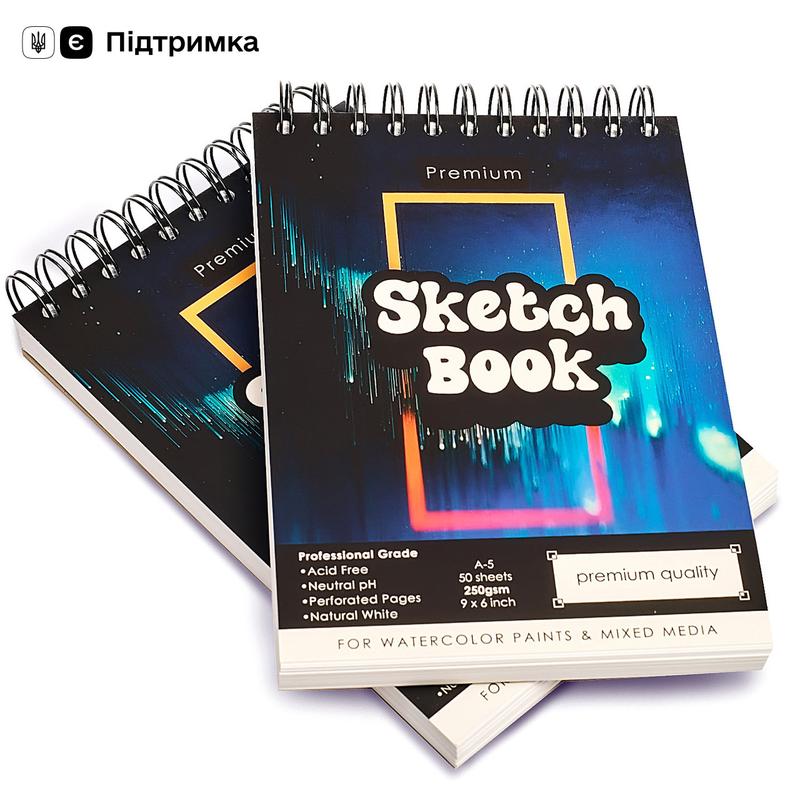 Бумага для скетчинга. Размер А-5, 148х210 мм. Альбом из 50 листов плотностью 250 г/м2. Альбом на спиральке, задняя сторона — плотный картон. Подходит как для рисования акварелями, акриловыми красками, гуашью, так и для пастели, карандашей и фломастеров. Отличный подарок для юных талантов.