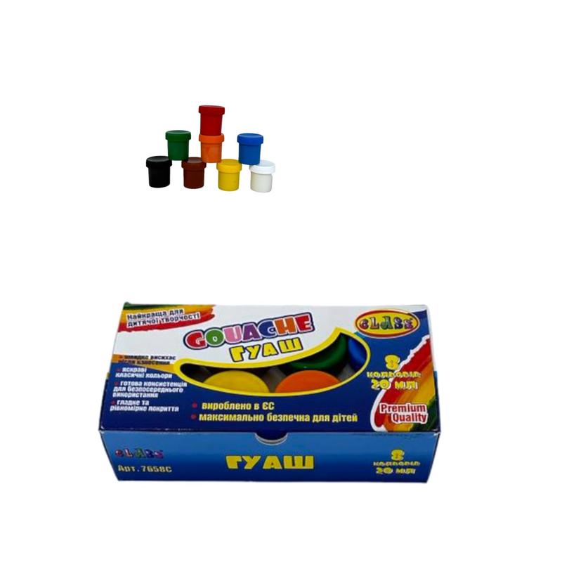 Фарби гуашеві PREMIUM CLASS, 8 кольорів. Об'єм - 20 мл/баночка Упаковка - коробка. Ціна за упаковку.