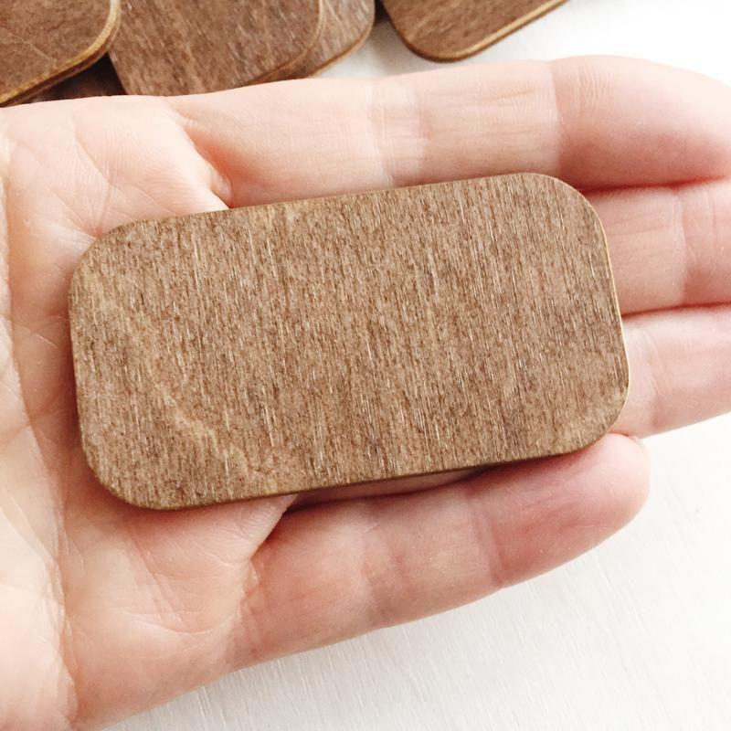 Набор из 105 штук прямоугольников размером 6.4 см х 3.4 см Березовая фанера 3 мм Отшлифованы, покрашены в цвет орех, покрыты лаком Подойдёт для любого вида творчества: для бирок, тегов, табличек Продаётся только набором 105 штук ( плюс несколько в подарок)