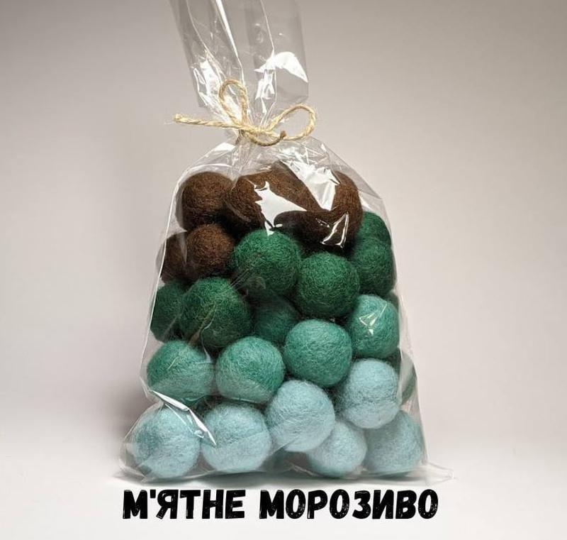 Набір вовняних кульок для творчості "м'ятне морозиво"