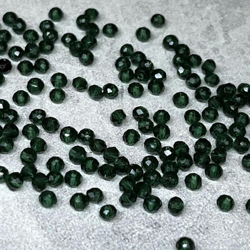 Бусы рондель 2*2 мм, цвет темно-зеленый (прозрачный), 1-нить ≈145-155 шт, темно-зеленый