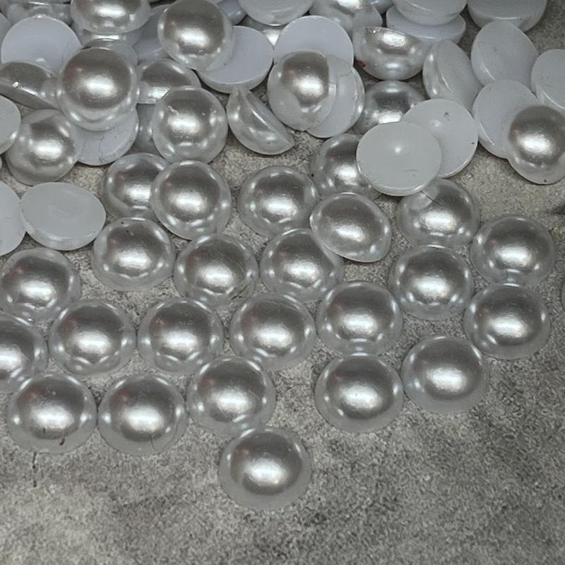 Камешки-половинки (полубусины) 10 мм, цвет-белый, арт (019080), уп~25 грам, (~ 98-102 шт),...