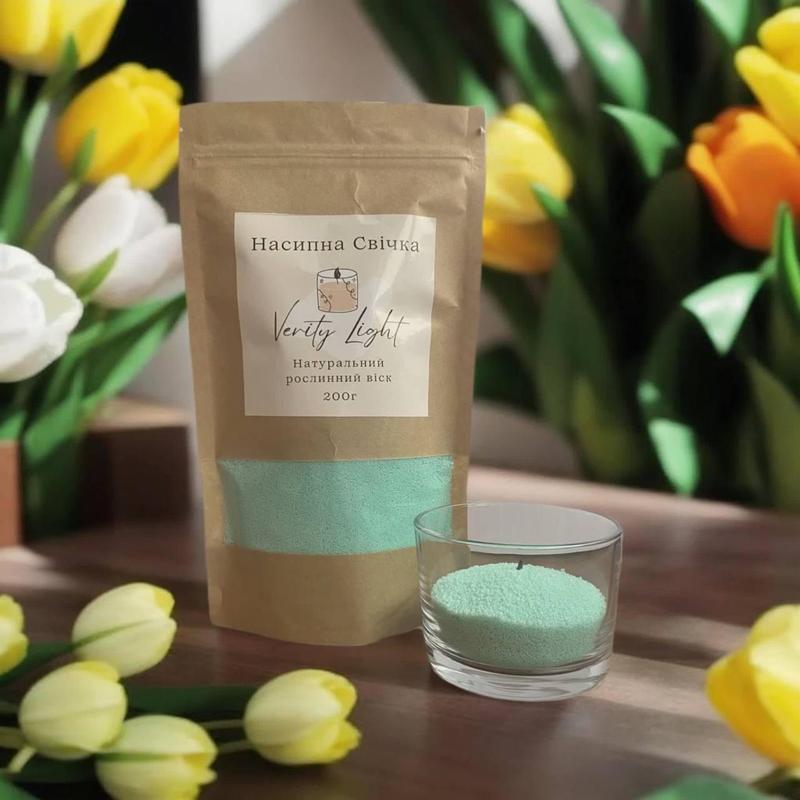 Насыпная свеча (пальмовый насыпной воск) 200 грамм мятного цвета + 20 см. фитиля