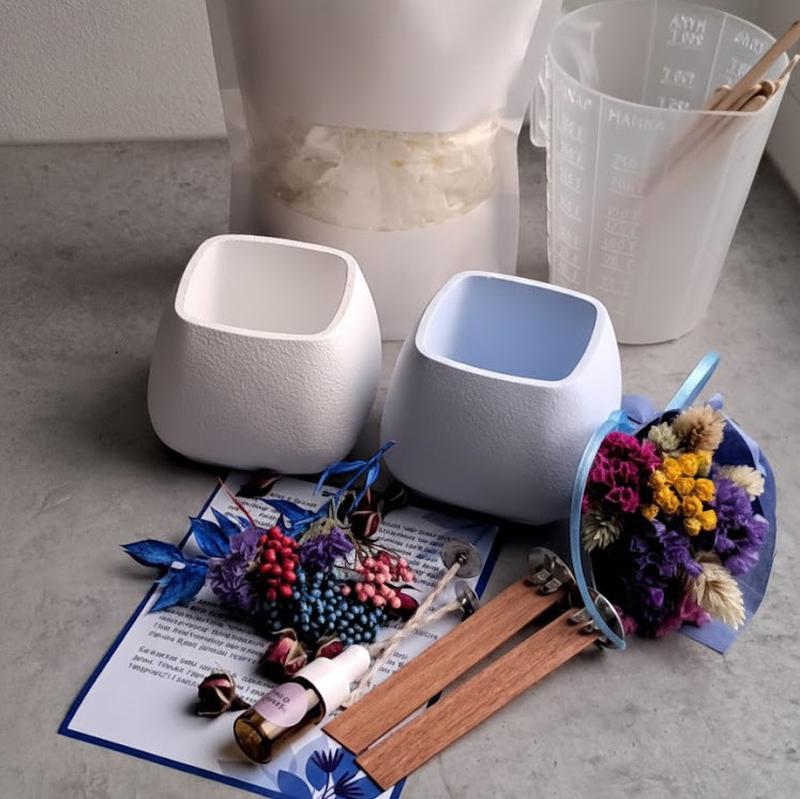 Набор для изготовления свечей белого и голубого цвета Состав набора: * соевой воск 350 грамм; * 3 гипсовые формы: размер высота 6 см, диаметр 6/7,5 см; * 2 хлопковых фитиля, 2 деревянных фитиля; * 2 аромата на ваш выбор: 1) аромат для свечей фрезия 2 мл; 2) аромат для свечей орхидея 2 мл; 3) аромат для свечей магнолия 2 мл; 4) аромат для свечей манго 2 мл; 5) аромат для свечей миндаль 2 мл 6) аромат для свечей корица 2 мл 7) аромат для свечей малина 2 мл 8) аромат для свечей сандал 2 мл 9) аромат для свечей ваниль 2 мл 10) аромат для свечей вишня 2 мл 11) аромат для свечей клубника 2 мл 12) аромат для свечей ожогом 2 мл 13) аромат для свечей карамель 2 мл 14) аромат для свечей кокос 2 мл 15) аромат для свечей Palo Santo 2 мл 16) аромат для свечей шоколад 2 мл 17) аромат для свечей жаркое яблоко 2 мл * мерный стаканчик; * сухоцвет для декора; * деревянные палочки; * наши секреты изготовления свечей * букетик сухоцветов * открытка * подарочная упаковка У тебя будет: 2 уникальные крафтовые свечи увлечения от процесса свечения Ощутим творческое вдохновение и радость от результата живое пламя свечи подарит сказочное настроение и создаст атмосферу праздника, уюта и романтики.