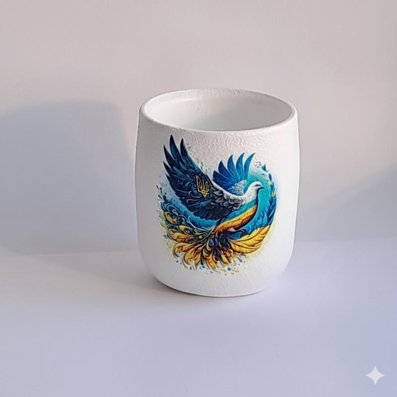 Стильное кашпо для свечей ручной работы с ярким украинским символом - птицей в сине-желтых цветах. Идеально подходит для заливки ароматных свечей, подарочных наборов или как самостоятельный декоративный элемент интерьера. Имеет удобный размер, уровни стенки и хорошо удерживает тепло, подходит для соевого, кокосового или пчелиного воска. Кашпо создает ощущение силы, света и тепла — особенно ценно для патриотических коллекций и подарков 🇺🇦 Характеристики: • Объем: 160 мл • Высота: 8,5 см • Ширина: 7 см • Назначение: для заливки свечей • Материал: декоративное кашпо (ручная работа) Подойдет для мастеров, handmade-брендов и творческих наборов.