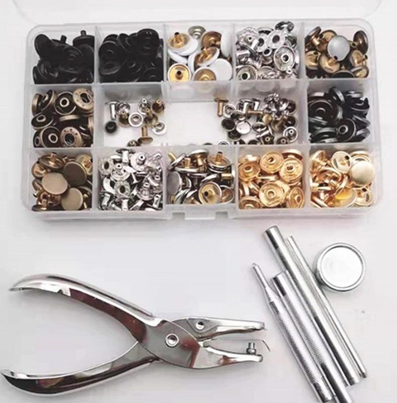 Набор для установки кнопок 12,5 мм 120 шт и хольнитенов 8 мм 20 шт + инструменты для устан...