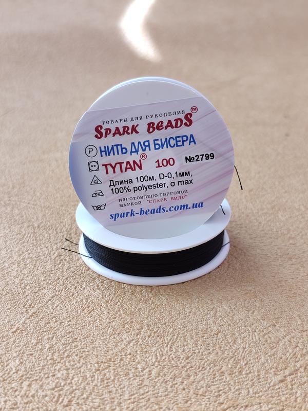 Нить для бисера TYTAN Spark beadS Длина - 100 м, толщина нити - 0,1 мм. Цвет - белый (белоснежный). Код цвета: Нитка для бісеру TYTAN 100 No2799. Чорний 100 м 100% полиэстер.
