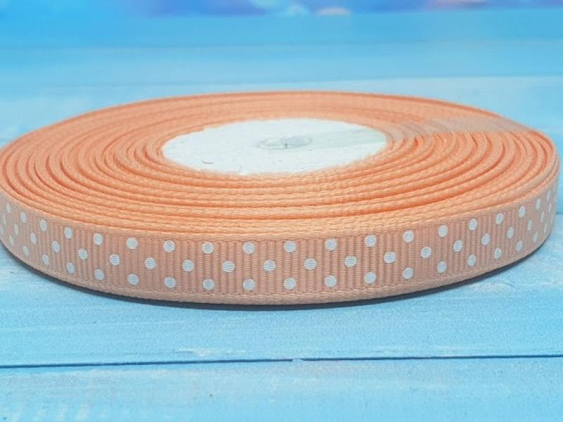Репсовая лента в горох 1 см, цвет персиковый, метр