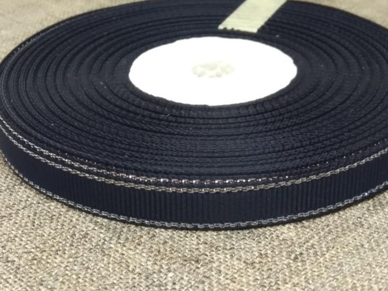 Лента репсовая с серебристым люрексом 0,9 см, темно-синий, метр, темно-синий