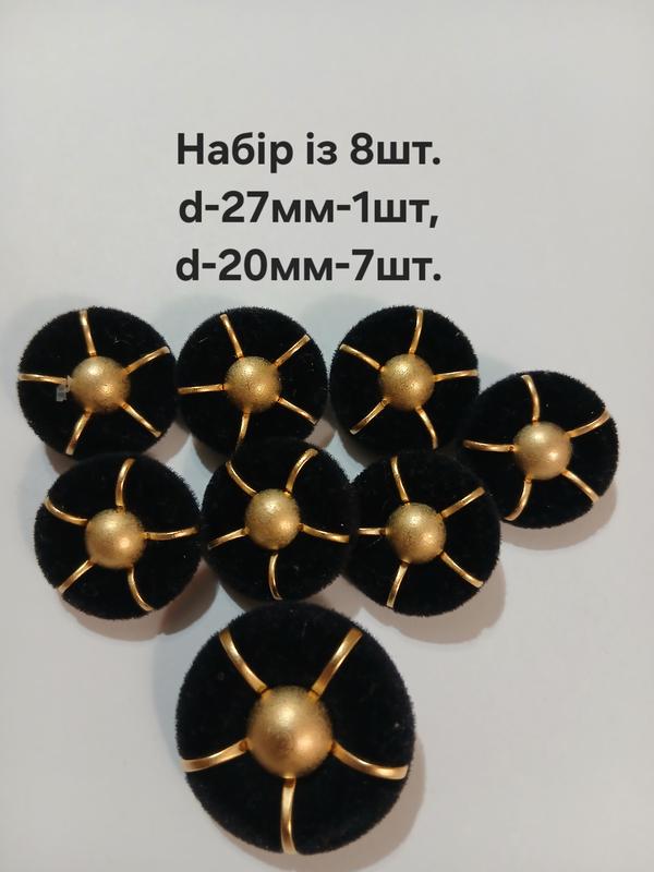 Набір із 8 гудзиків оксамитових(1шт-д27мм,7шт-д20мм)франція