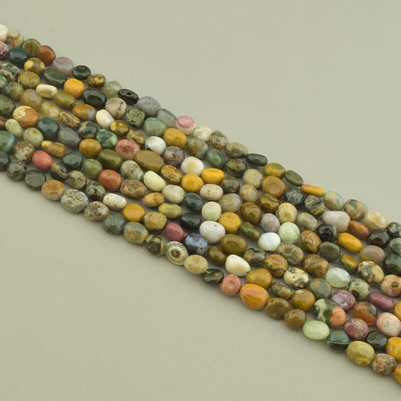 Артикул: 122684 Размер камня: 10х8 мм. Тип замочка: Без замка Длина: 40 см. Камень: Яшма(нат.) Цвет: Зеленый Цвет2: Коричневый Вес: 24,5 г.