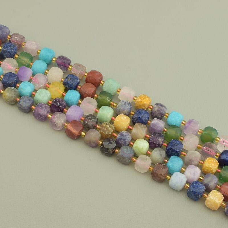 Артикул: 122544 Размер камня: 8,5х8,5 мм. Тип замочка: Без замка Длина: 38 см. Камень: Самоцветы(нат.) Цвет: Разноцветный Форма товара1: Грань Вес: 42,7 г.