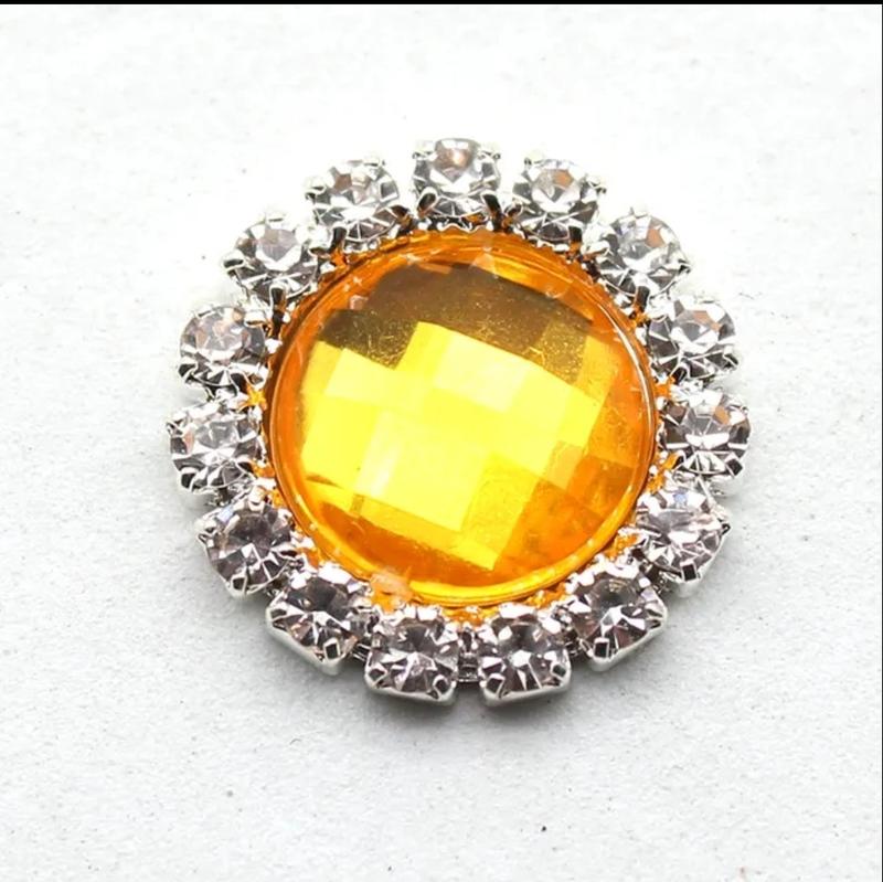 Камень в серебристой стразовой оправе 1,5 см желтый