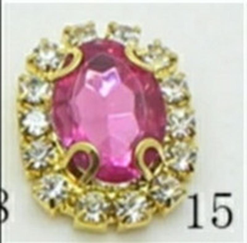Камень в золотистой оправе 2*1,5 см ярко-розовый