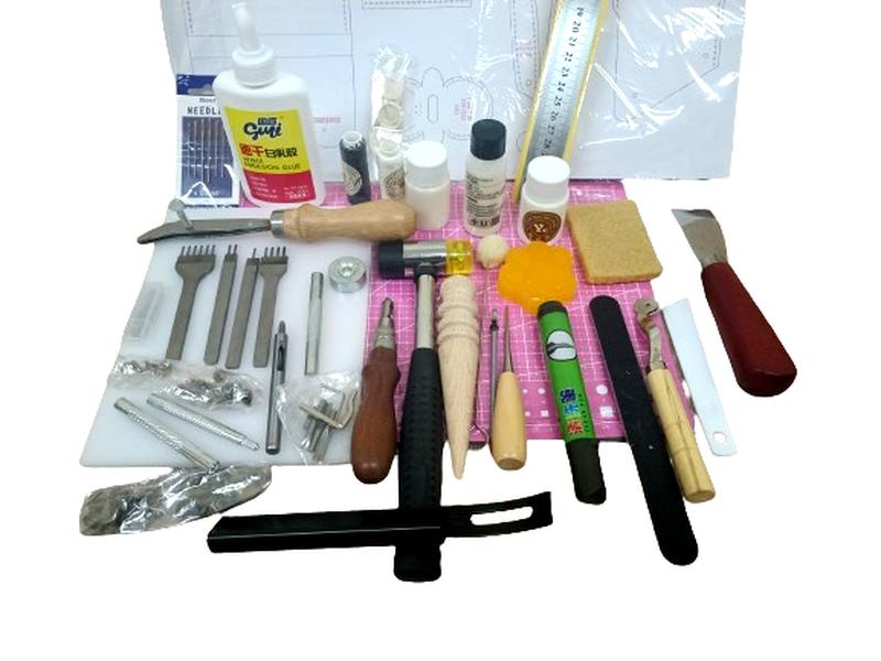 Набор инструментов для работы с кожей 37 предметов с химией + шаблоны для шитья leather cr...