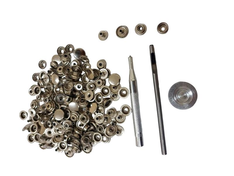 Набор для установки кнопок 12 мм каппа из 3 предметов + 50 кнопок цвет серебро
