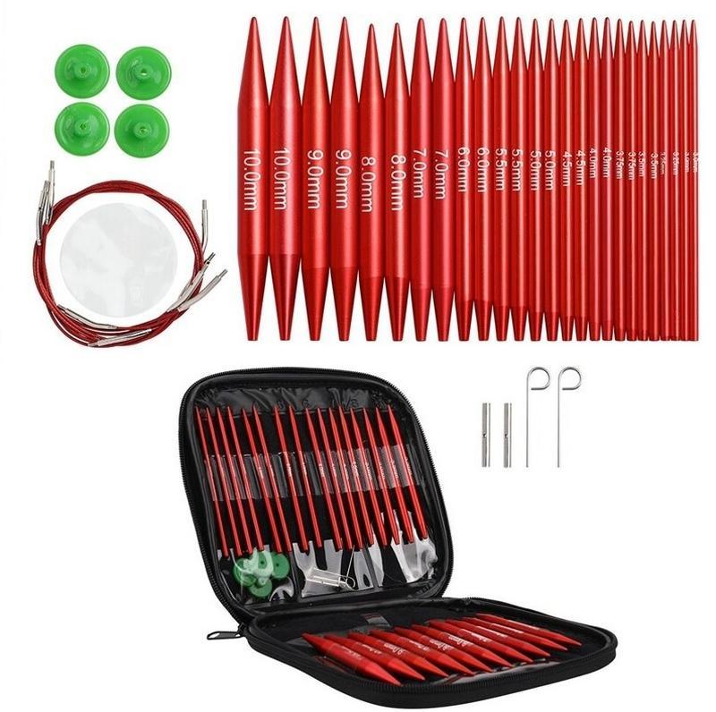 Вид творчості: В'язання Тип продукту: Набори В набір входят спиці наступних розмірів 3 мм, 3,25 мм, 3,5 мм, 3,75 мм, 4,0 мм, 4,5 мм, 5,0 мм, 5,5 мм, 6,0 мм, 7,0 мм, 8,0 мм, 9,0 мм, 10,0 мм А також 4 тросики (30см, 40см, 45см, 55см) 2 ключі 2 перехідники, 4 заглушки Все упаковано у зручний чохол. Детальні фото додаються.