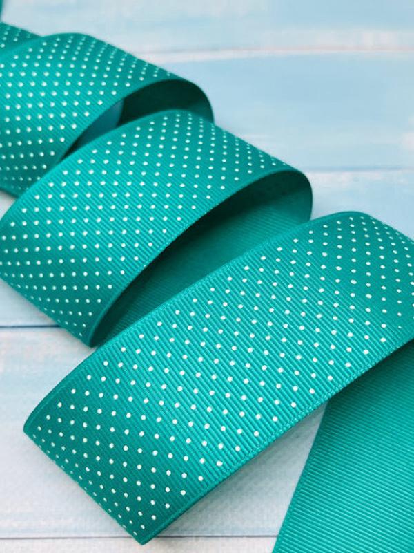 Репсовая лента в мелкий горох -4 см, цвет – бирюзовый, остаток 1,85 м
