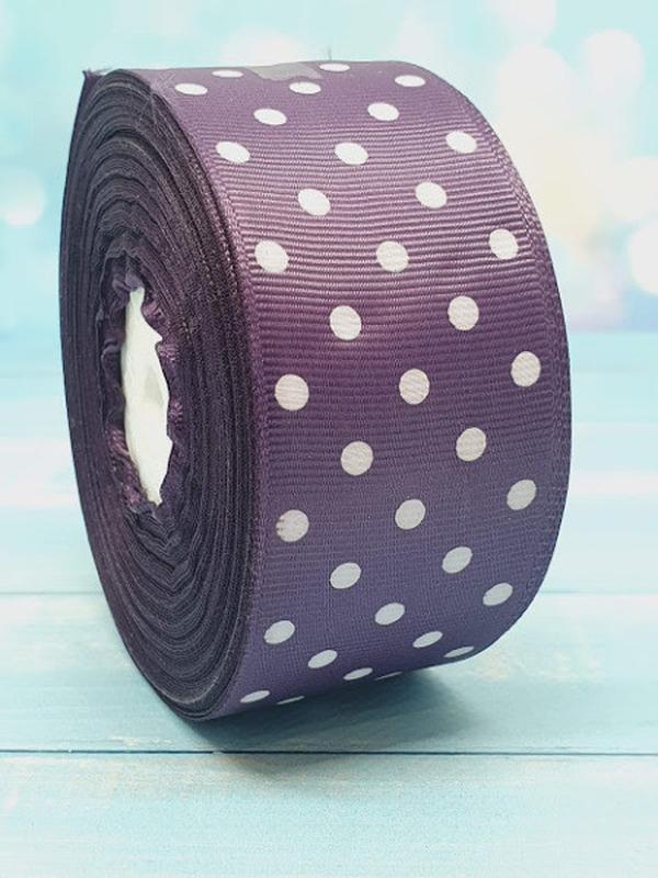 Репсовая лента в горох 4 см, цвет темно-фиолетовый, метр