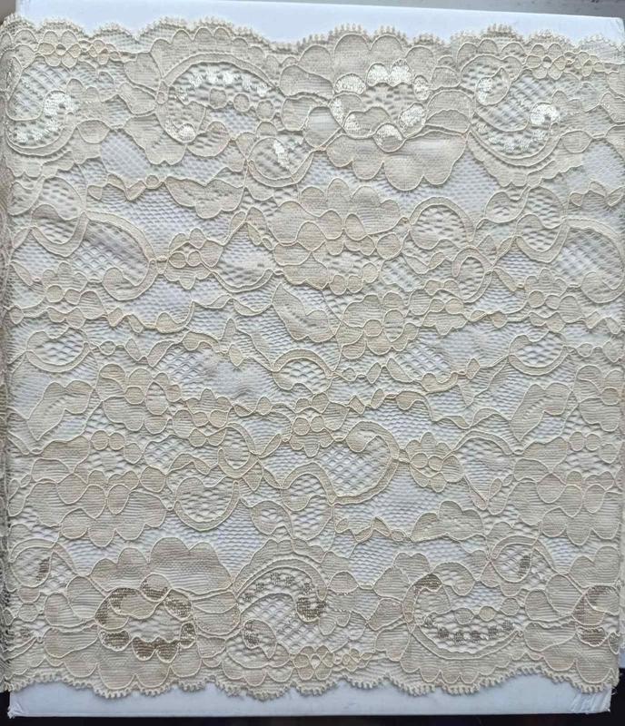 Кружево стрейчевое эластичное Бежевого цвета шириной 22 см Кружево мягкое эластичное, приятное на руку, для нижнего белья. Используются для пошива нижнего белья, декора одежды, скрапбукинга, декора интерьера, при изготовлении авторских украшений. Цена указана в 1 метре.