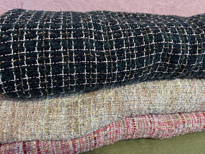 Твід шанель з блискітками, 390 грн/м, ширина 150см, Туреччина. Ліквідація товару. Рожевого немає в наявності, світлого 1 м, темного-зеленого-3 м