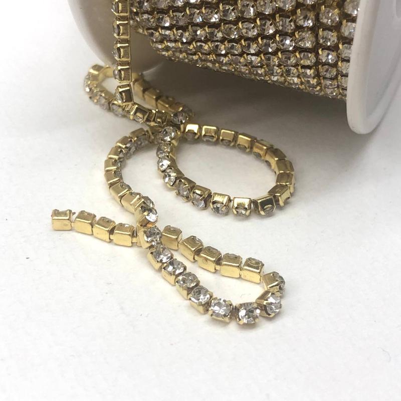 1м - стразовая цепь ss10 (2,8 мм), кристалл в золоте