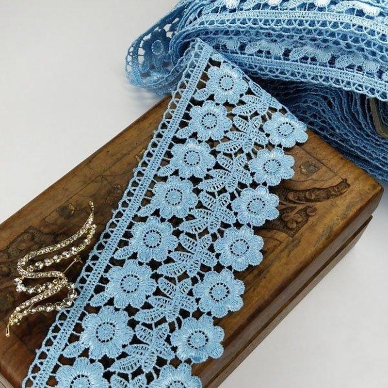 (1 метр) кружево макраме sindtex 7,5см цвет - голубой (25м-f1375e1-3)