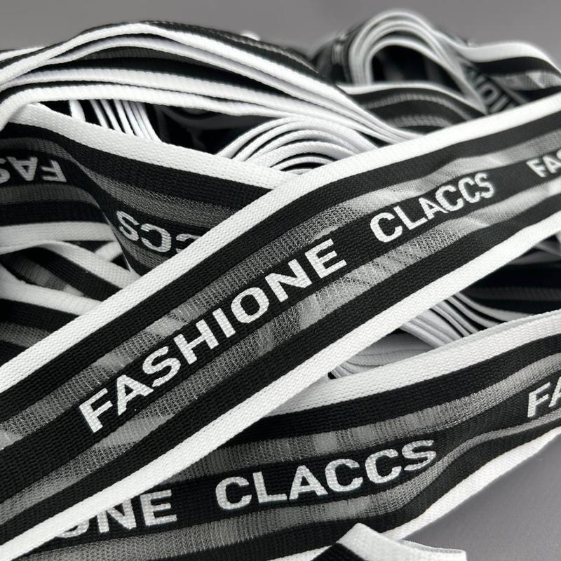 Лампасная тесьма-сетка, трикотажная 4,8 см - черная с белыми буквами